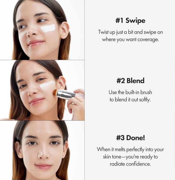 طراحی استیکی این محصول باعث استفاده آسان و دقیق میشود و براش سیلیکونی با 32,000 تار مو، پخش یکنواخت کرم را تضمین میکند. این کرم پودر مقاوم در برابر تعریق و ماسک بوده و مناسب برای پوستهای حساس است.